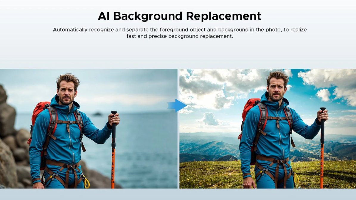 ▼背景だけを別の画像に差し替える背景置き換え機能だったり。↓