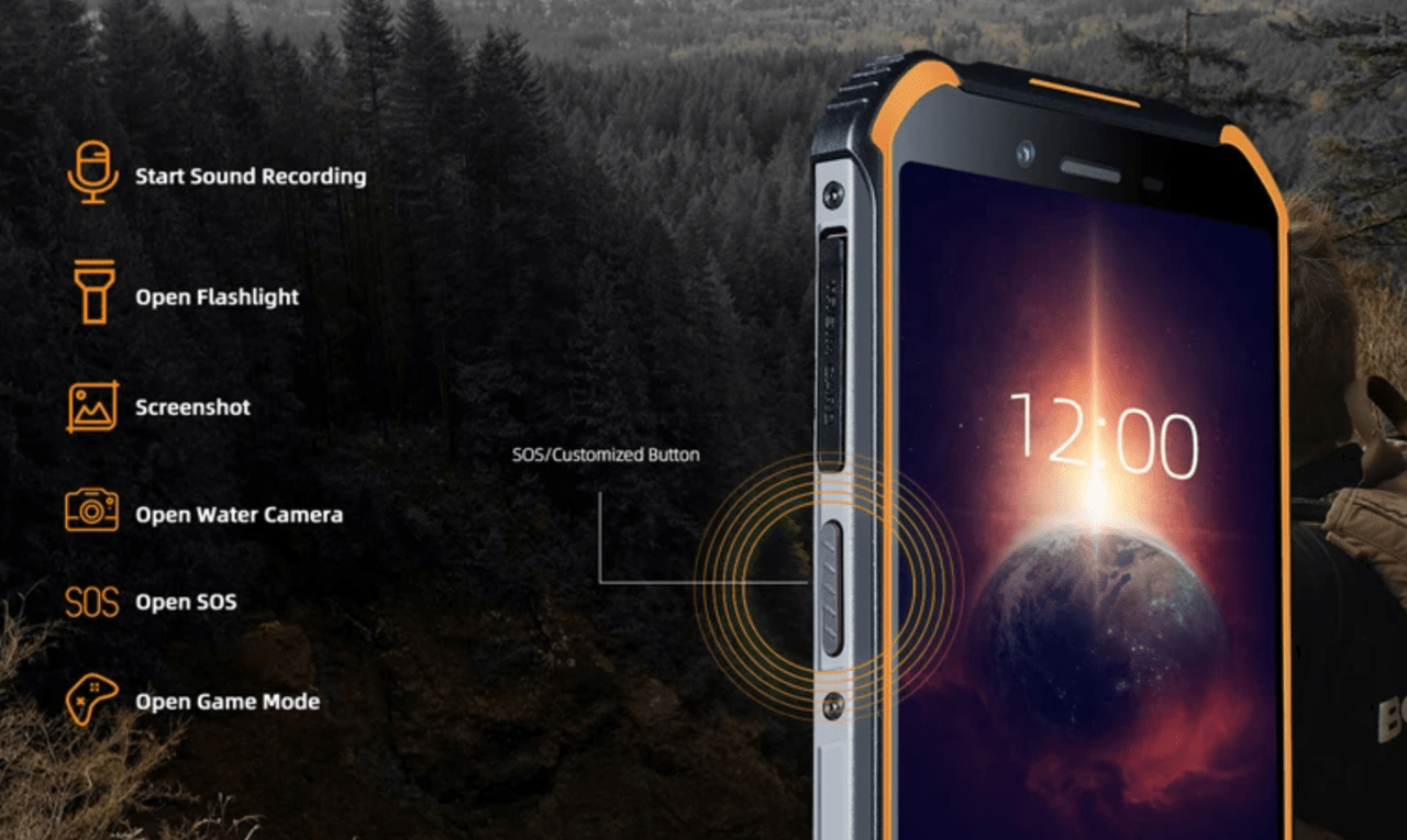 DOOGEE S40 Proの左側面には、アプリや各種機能のショートカット、フラッシュライトやSOSなどの用途に割り振れる独自キーを搭載しております。よく使う機能に1発でアクセスできるのが便利。