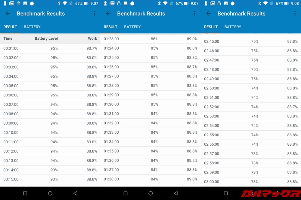 バッテリー持ちの検証ですがいつも利用しているアプリでエラーが出たのでGeekbench 4のバッテリーテスト結果を残しておきます。