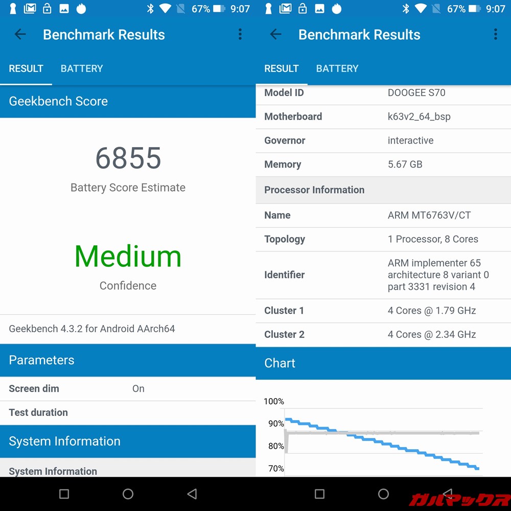 ▼DOOGEE S70の実機Geekbench 4スコアは、シングルコア性能が903点、マルチコア性能が3970点!↓