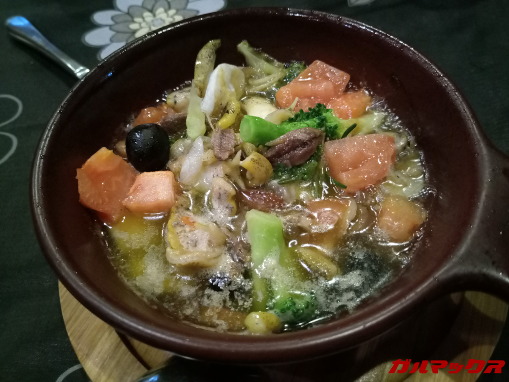 ▼少し薄暗い飲食店での料理写真。SNSなどで共有する時は少し明るくコントラストを強くすると映えます。↓