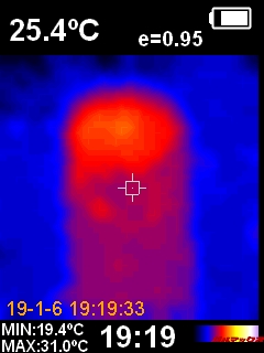 発熱はパフォーマンスを下げる大敵。DOOGEE S70は排熱性能が高いと謳っているので効果が気になるところです。最も端末を酷使するベンチマーク中にサーモグラフィーを利用して発熱具合をチェックしてみました。