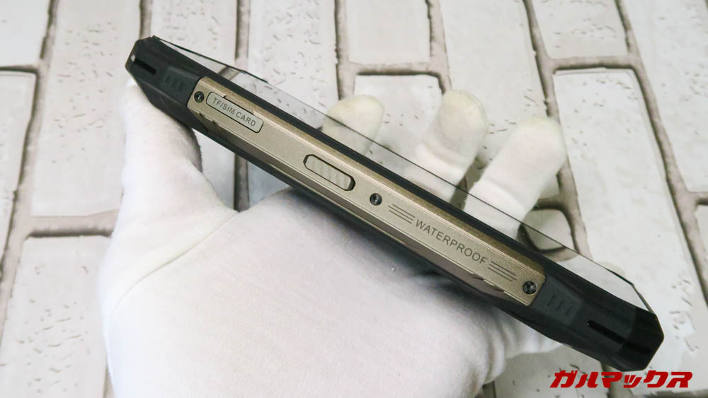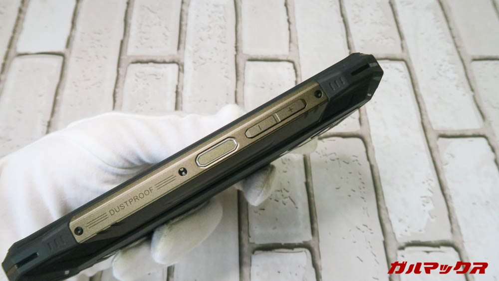 側面をチェック。上下は衝撃に強い樹脂、側面はサラサラ質感のメタルボディで守備を固めている構造。各種ボタン配置は以下の通りです!