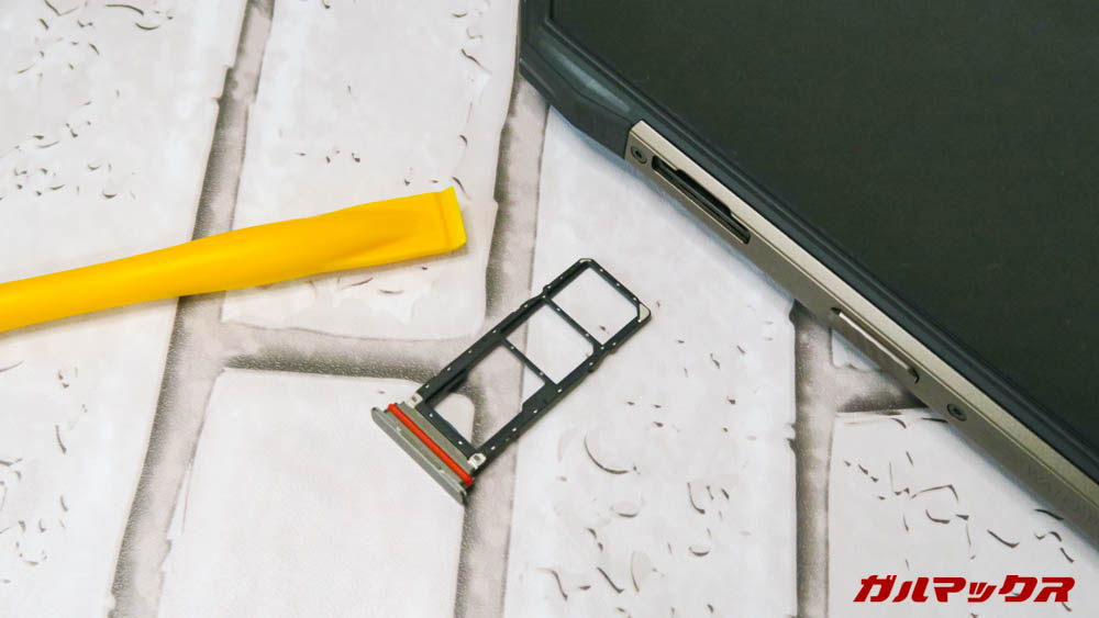 SIMスロットは嬉しいトリプル式。なので物理SIMでもデュアルSIMを構築できるだけでなく、MicroSDカードも同時に突っ込めるんですよね。