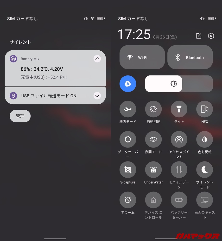 ▼個人的にはこのスタイルのほうが操作しやすくてお気に入りですね。あとDOOGEE S89 ProはMIUIのように通知とコントロールセンターが分けて表示される方式となっているのも特徴的!左上からスワイプで通知、右上からでコントロールセンター。↓