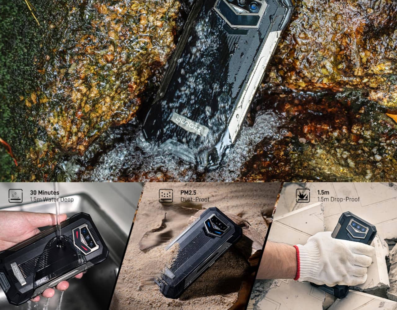 ▼防水防塵は最高等級のIP69K、耐衝撃はMIL-STD-810H準拠とタフネススマホらしい高耐久仕様も魅力。水に濡れようが砂まみれになろうがぶつけようがへっちゃらという凄い防御力を持っています。↓