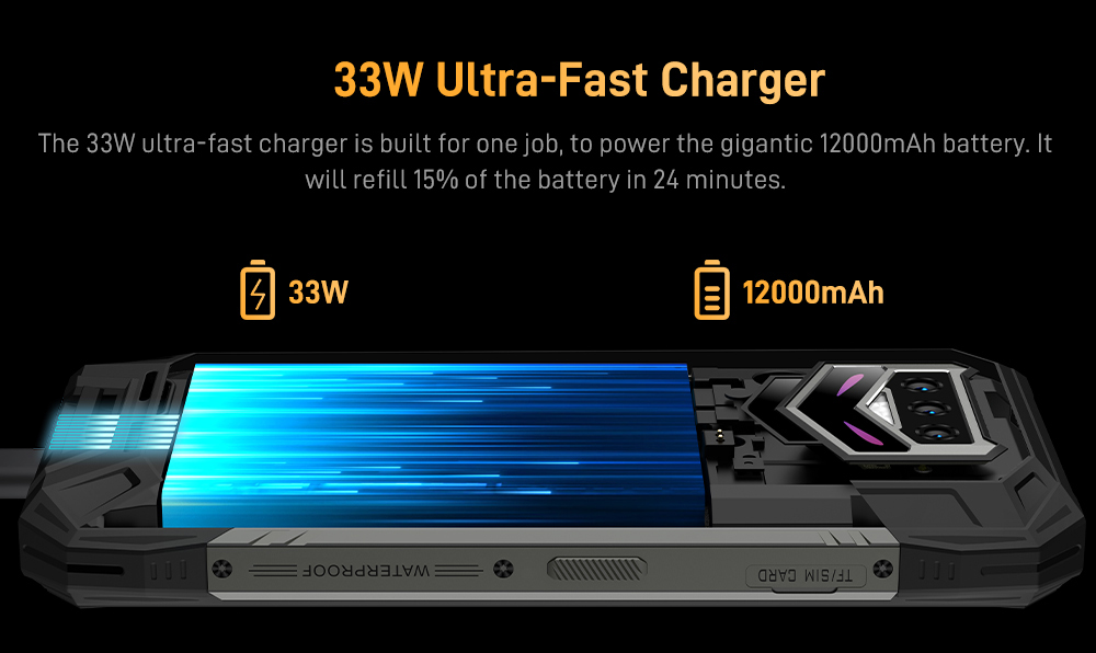 バッテリー容量は12,000mAhと大きいままで、さらに急速充電は33Wから65Wにグレードアップ!充電速度は更に早くなっています。