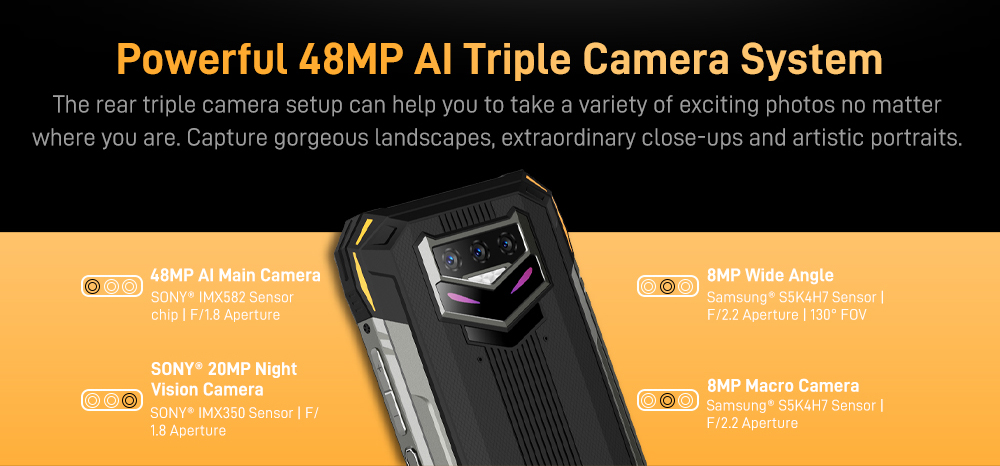 ▼カメラはトリプルカメラで、メインと超広角/マクロ、そしてナイトビジョンカメラを搭載しています!↓