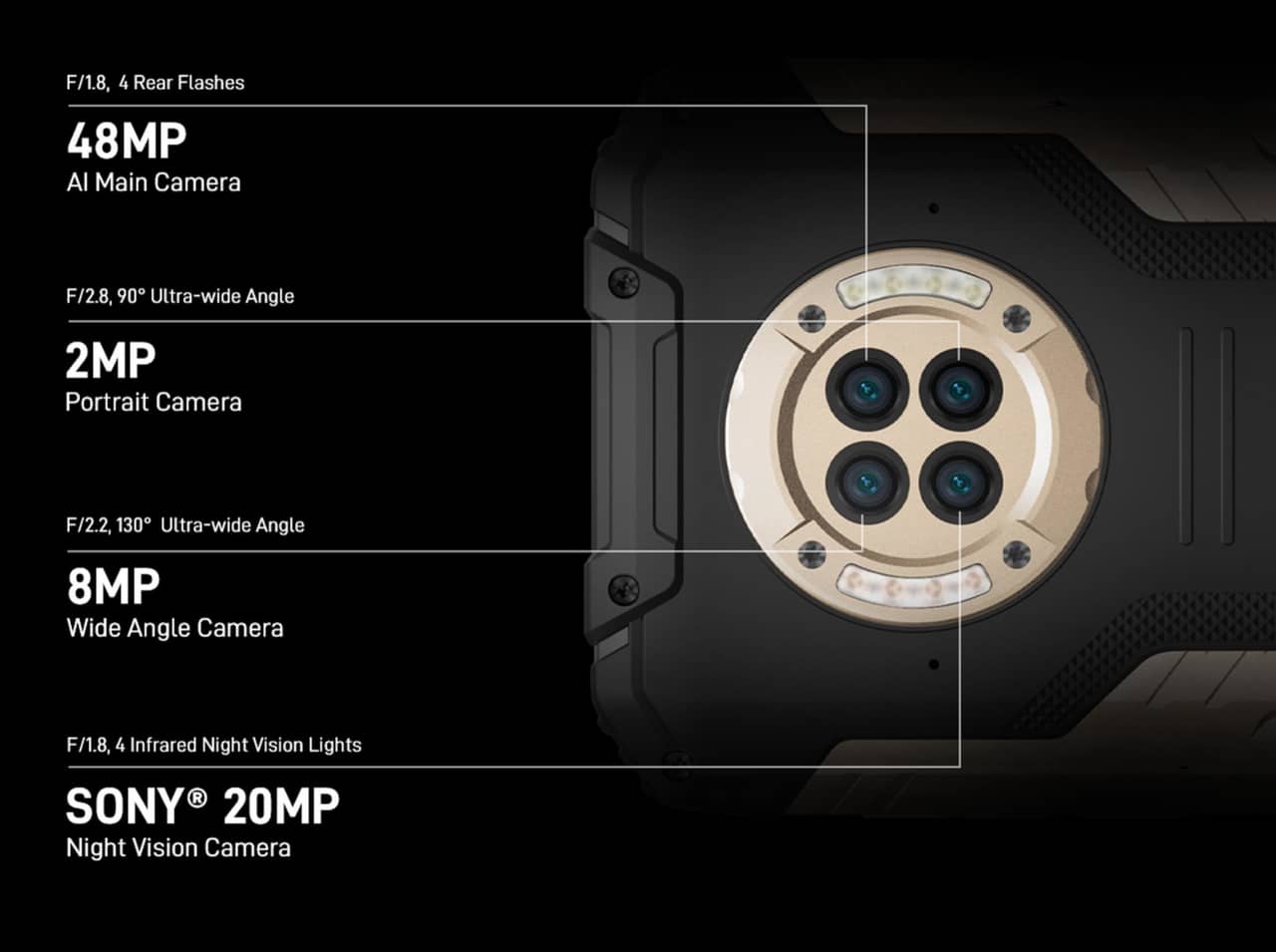 - ナイトビジョンカメラを搭載したクアッドカメラ