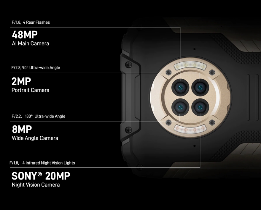 - 超広角、ポートレート、ナイトビジョンを備えた4カメラ