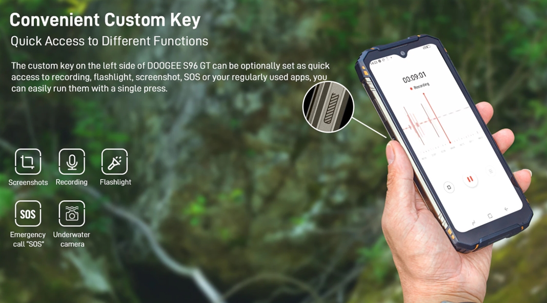 ▼本体左側には設定をカスタマイズできるマルチファンクションキーも搭載!スクショや水中カメラ、そしてアプリショートカット起動と便利に使えます。筆者からすれは「これ普通のスマホにも積んでくれねぇかな」って思ってるぐらいに好きな部分。↓