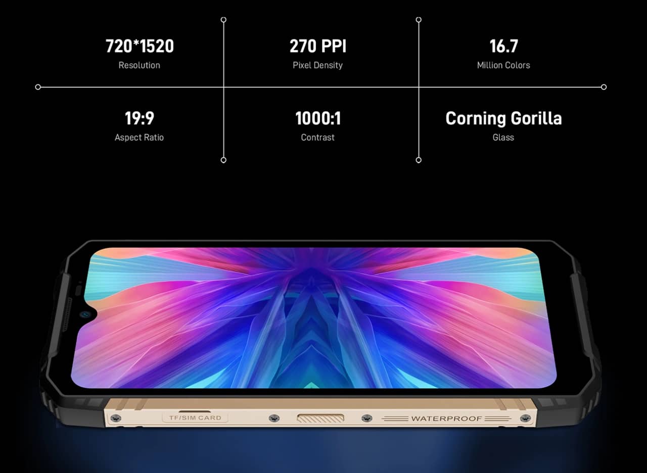 ▼ディスプレイは6.22インチの大きめサイズで19:9比率となっています!解像度はHD+クラス、ガラスはゴリラガラスを使っており割れにくくなっている仕上がり。↓