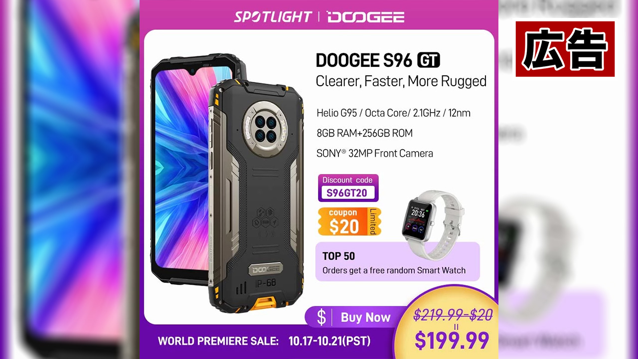 DOOGEE S96 GTが200ドルのセール!暗視カメラ、ワイヤレス充電対応タフネススマホ!