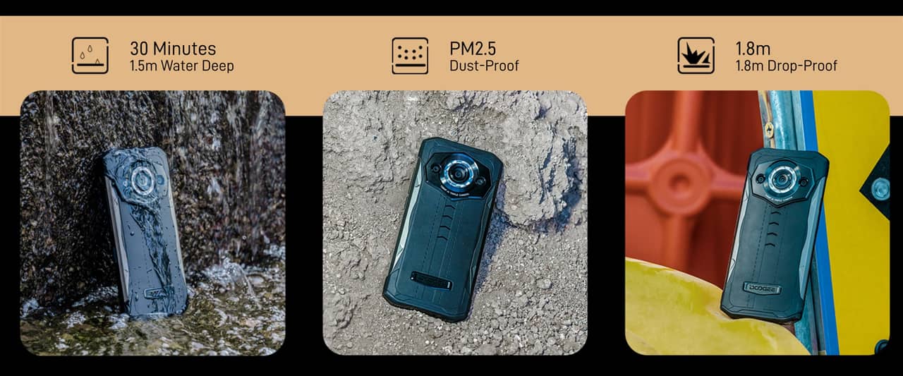 ▼防水防塵、耐衝撃もバッチリ。IP69Kという、IP68超えの特殊な等級を取得しており、水没や砂塵のみならずお湯がかかっても平気な頑丈さを持ち合わせているほか、MIL-STD-810H規格も取得しているので落としても割れにくいのが魅力です!↓