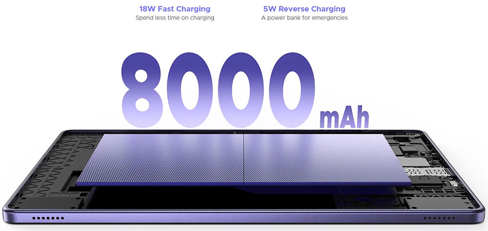 ▼バッテリー容量は8000mAh。18W(PD)の充電に対応しています。ローエンド~エントリーレベルで18W充電に対応しているのはありがたいですね。5W逆充電にも対応しています。↓