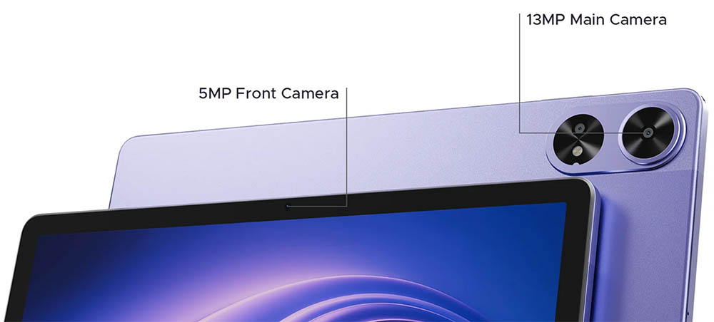 ▼リアカメラが13MP、フロントカメラが5MPとタブレットとしては一般的な最低限のレベルです。メモ代わりの記録撮影やQRコードを読み取るくらいなら十分でしょう。↓