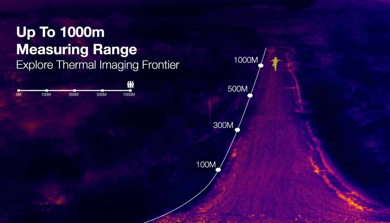 ▼しかもこのサーマルカメラ、1,000m、つまり1キロ先の熱も検出できるというぶっ飛んだスペックになっています!マジかよすげぇ。↓
