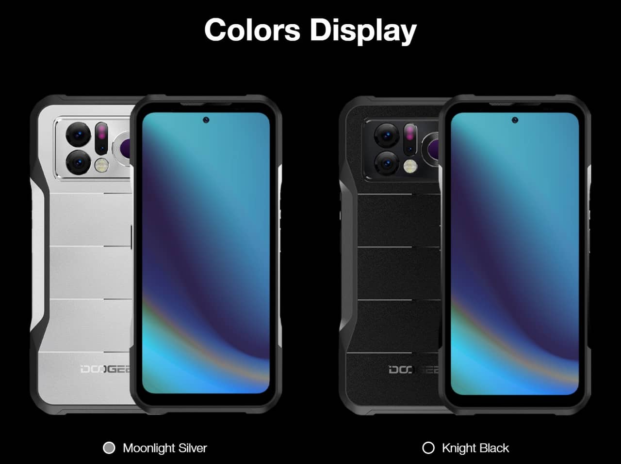 ▼DOOGEE V20 Proのカラーはシルバーとブラックの2色!タフネスモデルって複数のカラーがあっても差し色が変わる程度の製品がほとんどですが、これは全体的にガラッと色が変わるタフネスとしては結構珍しいタイプですね!↓