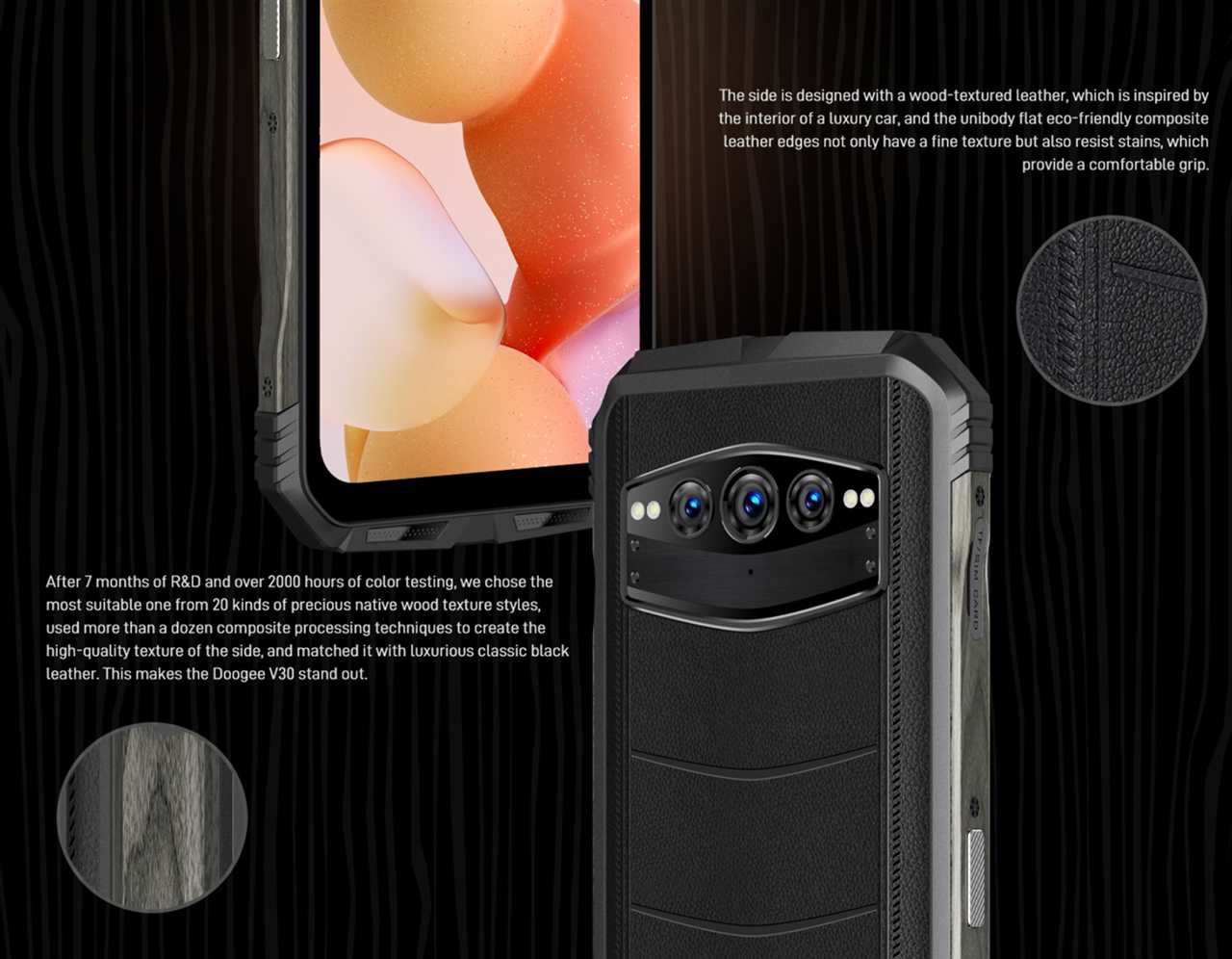 ▼DOOGEE V30は背面がレザー調、さらに側面も木目調というものすごい高級感ある見た目になっています!うわこれめっちゃ触ってみたい。↓