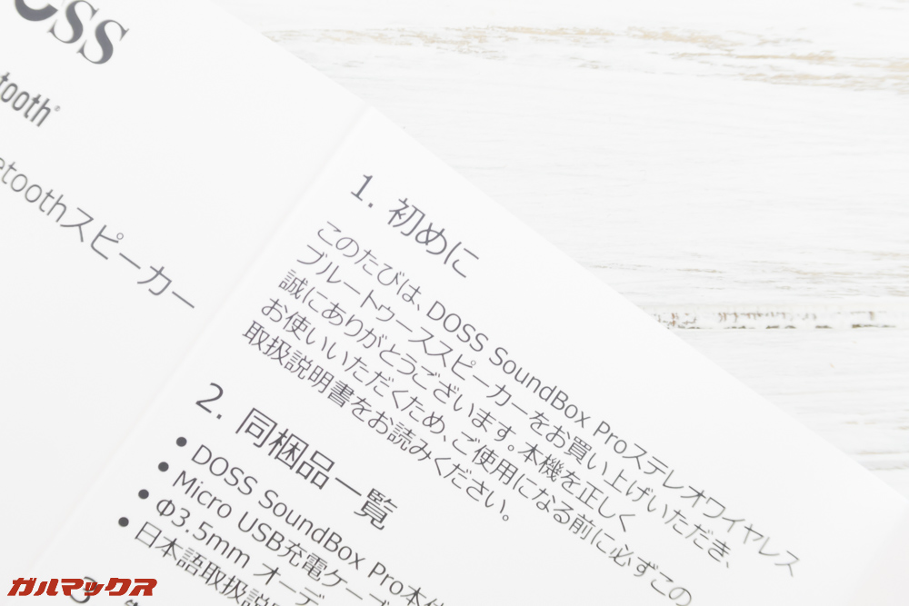 ▼DOSS SoundBox ProはTWSやライト調整など比較的多機能なBluetoothスピーカーなので取扱説明書はしっかり読みたいところです。付属する取扱説明書は日本語バージョンが付属しており翻訳も丁寧なので、初めてBluetoothスピーカーを購入する方も安心して購入できます。↓