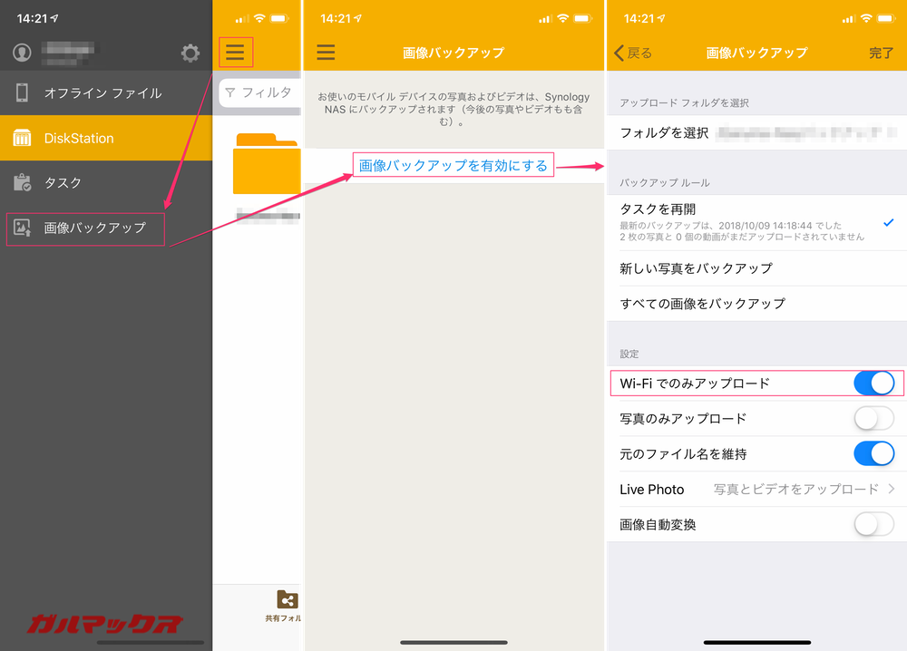 スマートフォンのカメラで撮影したデータをNASに自動保存