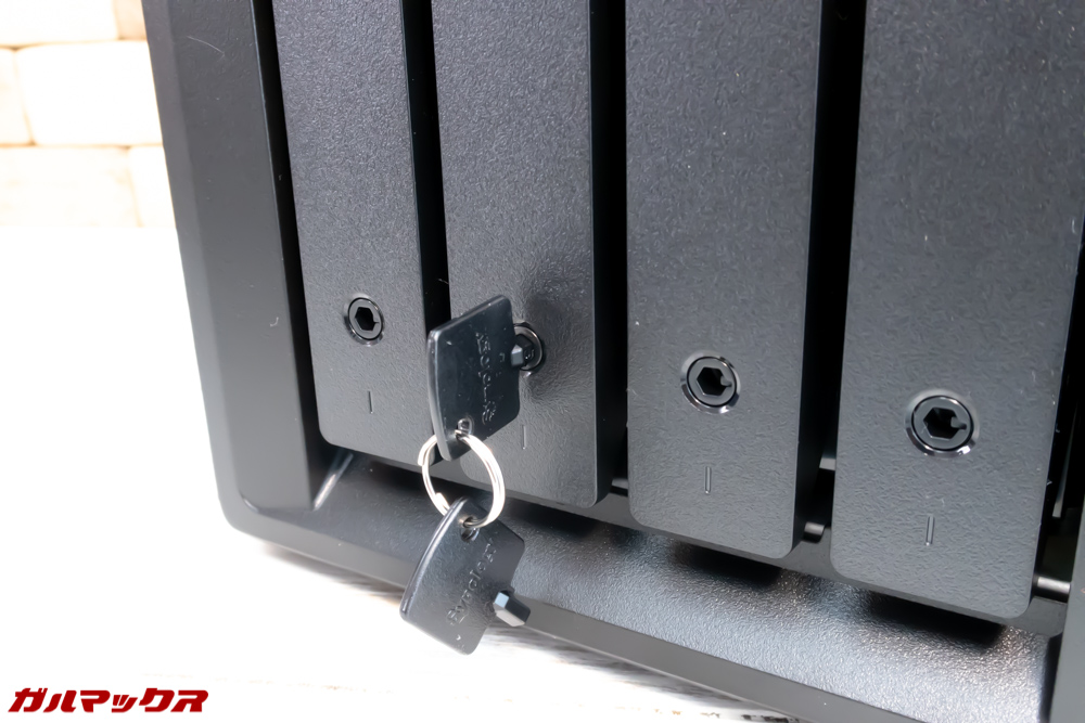 ▼HDDを挿し込んだら付属の鍵でロックしときましょう。↓
