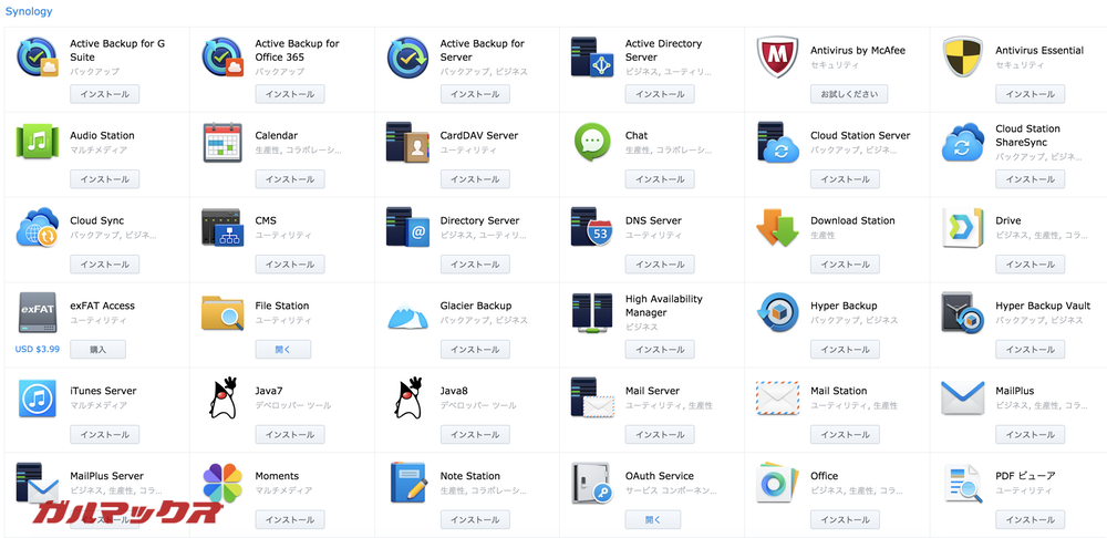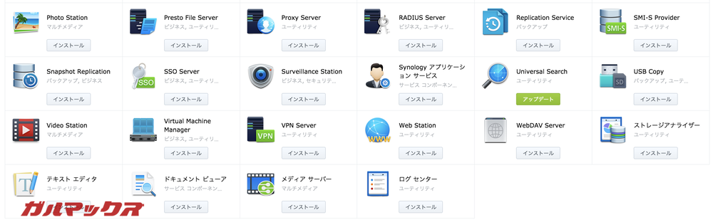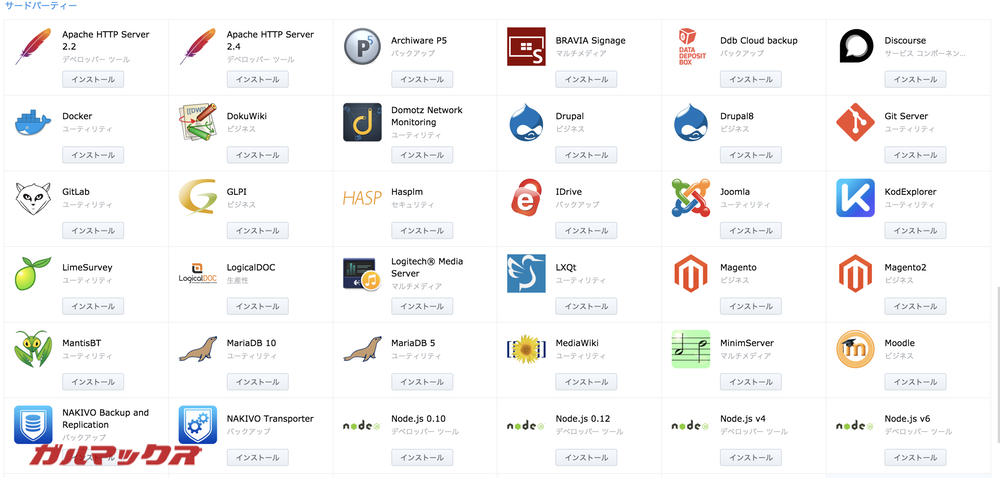 ▼DS918+に導入できるアプリケーションはメーカーリリース以外にサードパーティ製も多数利用可能となっています。少し小さいですが、拡大すると見れるはず!↓