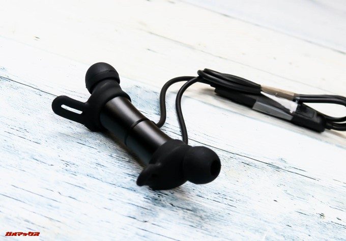 左右のイヤホンがケーブルで繋がっているタイプのBluetoothイヤホンって、利用していない時に耳から外して首からかける事が多いのですが、Dudios Zeus Plusは左右のハウジング部が磁石で引っ付くのでネックレスのような形状でぶら下げる事が出来ます。