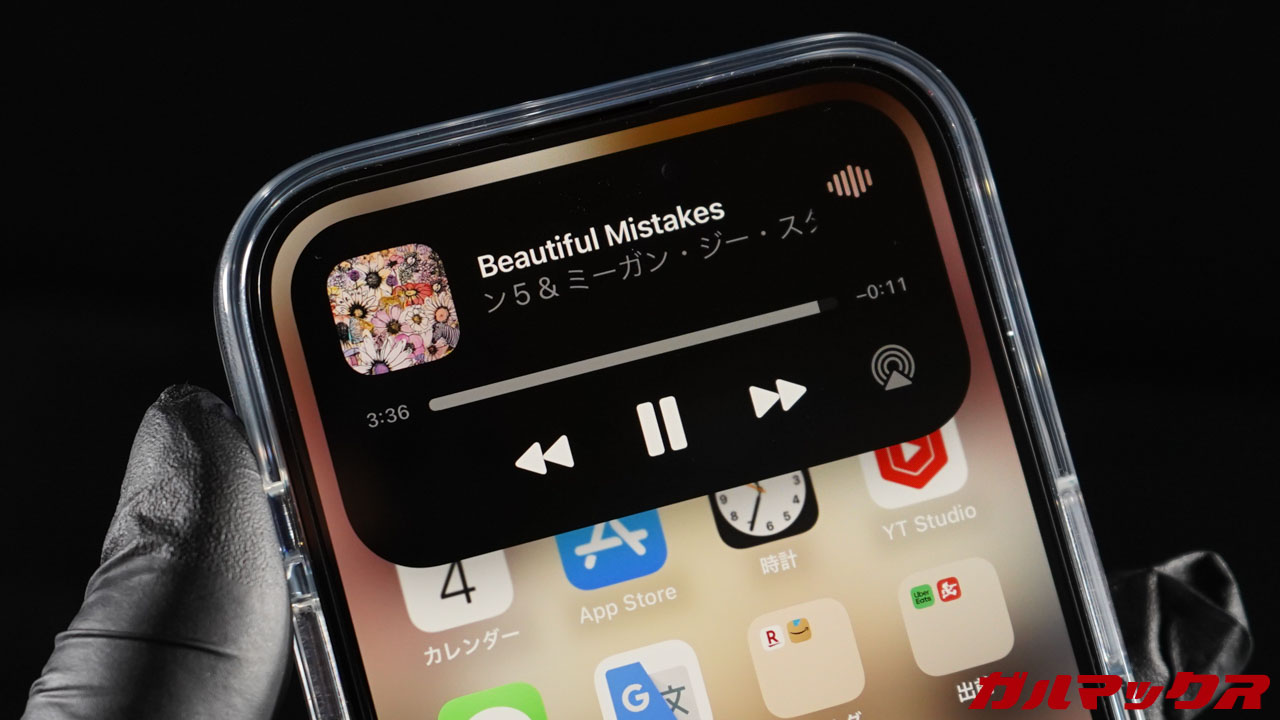 まあ、こんな感じに操作するわけだが、Dynamic Islandに対応しているソフトウェアではアプリの動作状況が常に表示され「長押し」と「タップ」という操作で簡単にアプリを制御出来るのである。これがすごくシンプル&直感的で使いやすい!