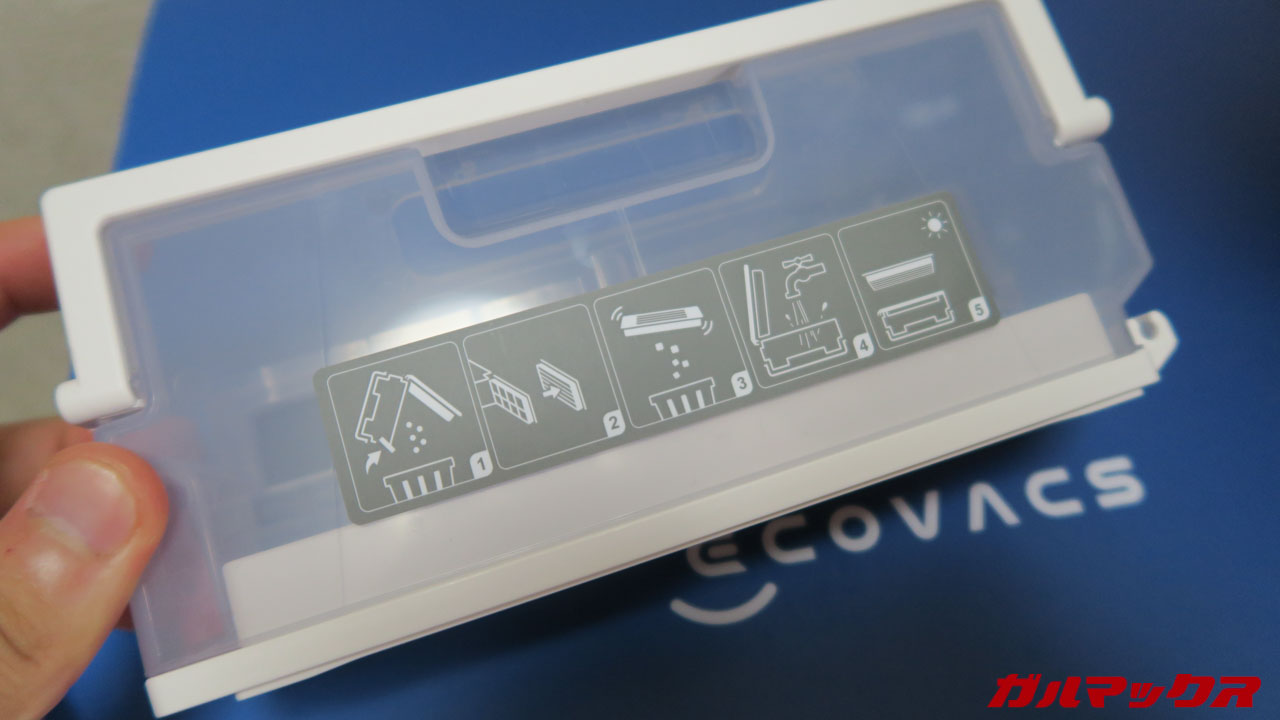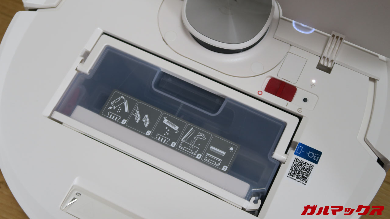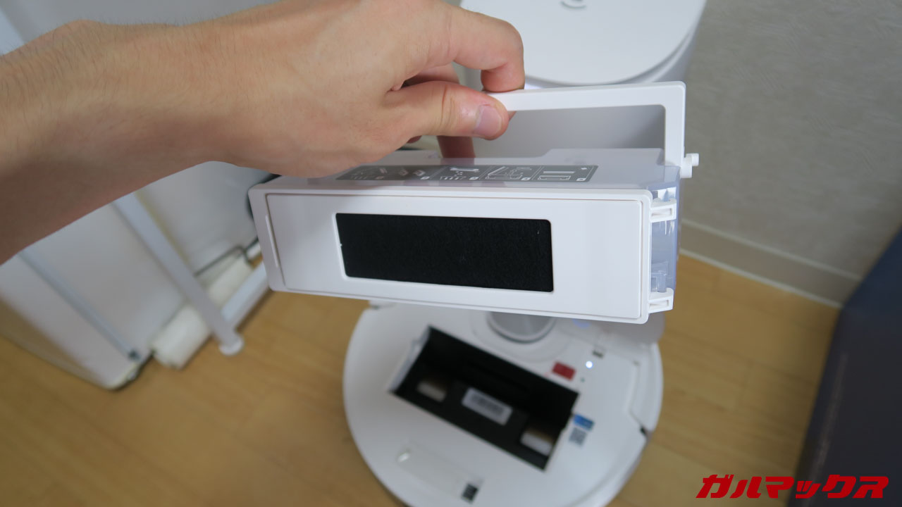 充電ステーションのノッポな見た目でわかった人もいると思いますが、ロボット掃除機からゴミを吸い上げて溜め込めるダストボックスが搭載されています。
