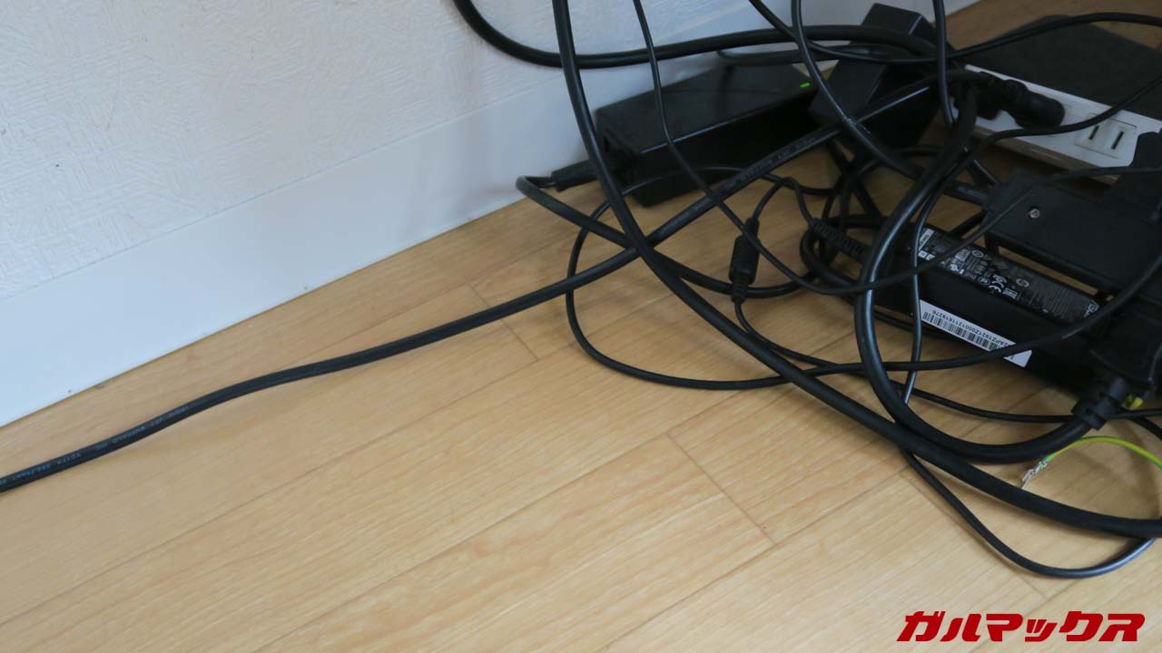 ▼特にこういうケーブルは大敵となります。回るブラシで普通に巻き込んで食われます。筆者のパソコンの電源ケーブルが一度持っていかれました。いきなり電源落ちたからマジでびっくりしたよ。↓