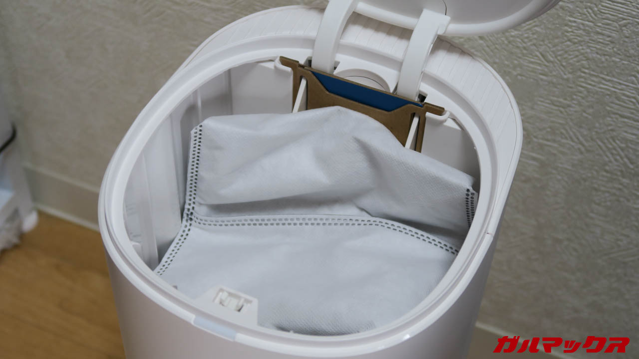 ▼上部はワンタッチで開くタイプでした。開くとステーション用のダストボックス。最初っから取り付けられていました。↓