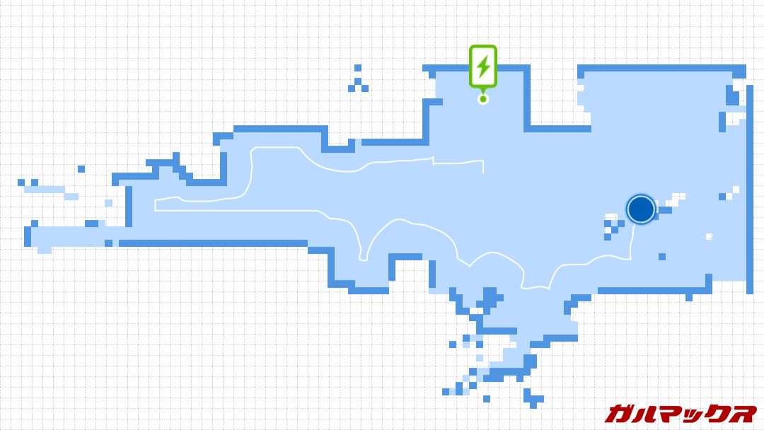 ▼清掃時は掃除機の位置がコンスタントに表示される他、白線で通った軌跡が表示されるのでどこを掃除したかがひとめで確認できるのも良いですな。↓