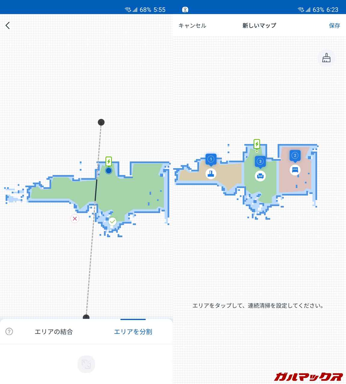 マッピング機能搭載。部屋区別や清掃の順番も設定できた