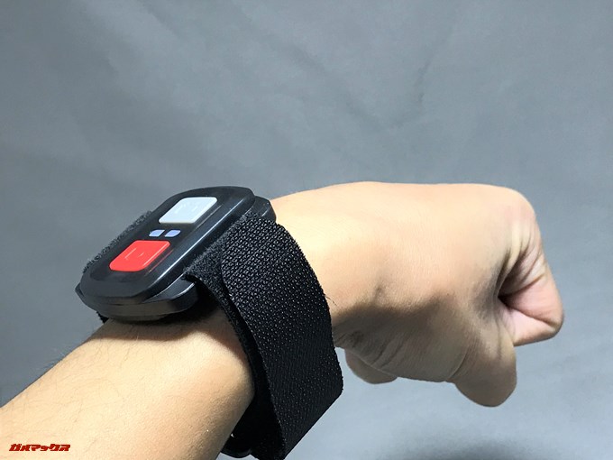 ▼EKEN H9sを遠隔で録画開始や停止、写真のシャッターを切ることが可能なリモコンが付属しています。専用のベルトを取り付ける事で時計型で利用可能です。↓