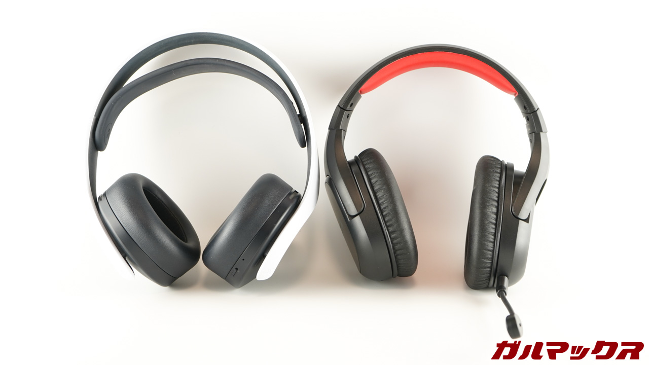 ▼今まで使っていたPULSE 3D ワイヤレスヘッドセット (CFI-ZWH1J)と比較するとこんな感じ。ヘッドバンドの締め付け感はHS-GMW100BKのがやや強い感じかな。↓