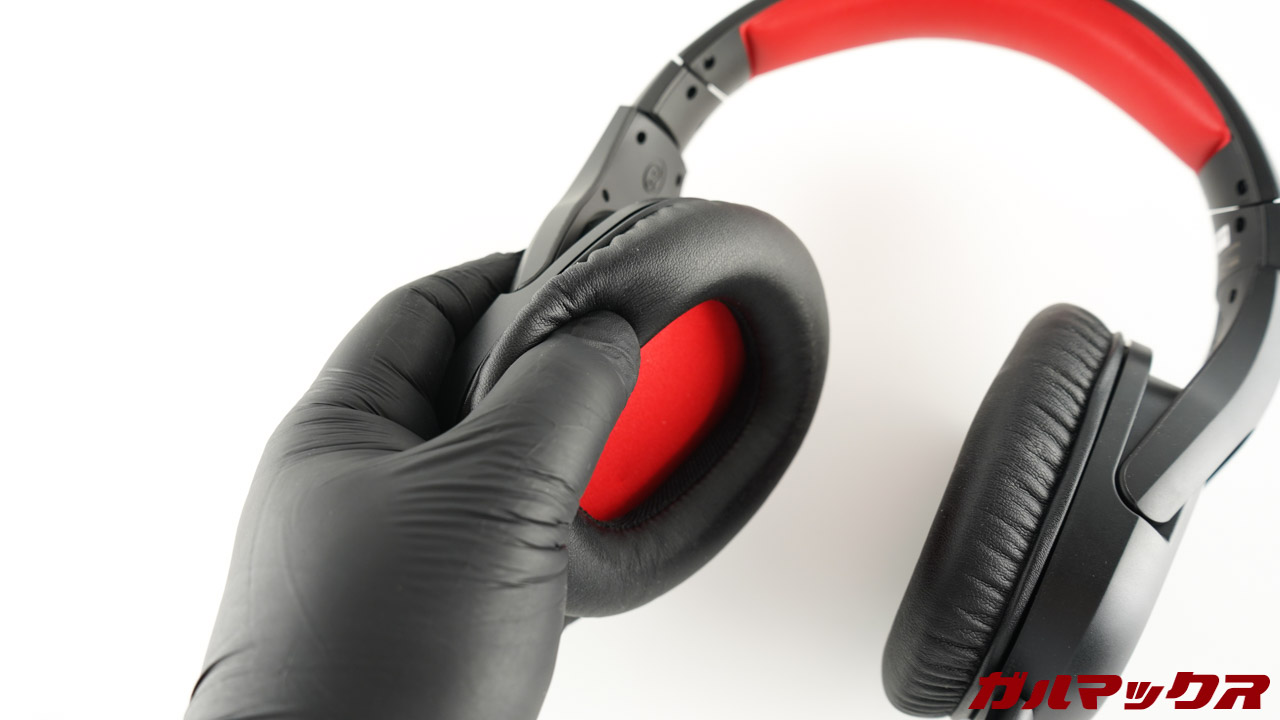 HS-GMW100BKのヘッドホンは割とガッシリした見た目なんやけど、付け心地はめちゃソフト。