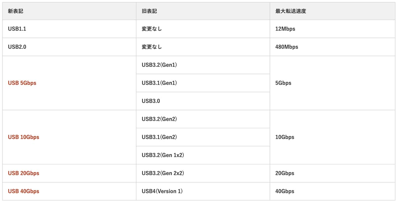 ▼USB 3.0以降から伝達速度ベースに表記が変わるようです。↓