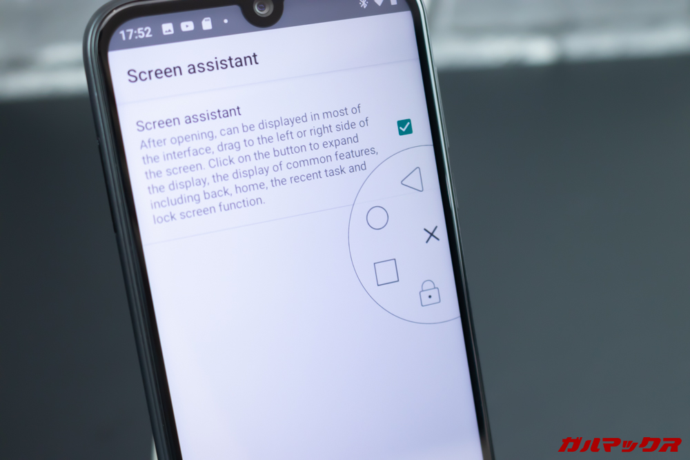 ▼設定→システム→Screen Assistantの項目をオンにするとソフトウェアボタンの表示も可能でした。物理ホームボタンを搭載していたiPhoneだったらボタンが故障した時に便利ですが、Elephone A6 miniはナビゲーションキーがオンスクリーンなので、ショートカットなどを挿入できたら良かったのですが、残念ながら戻る・ホーム・アプリ履歴・画面ロックしか表示出来ません↓