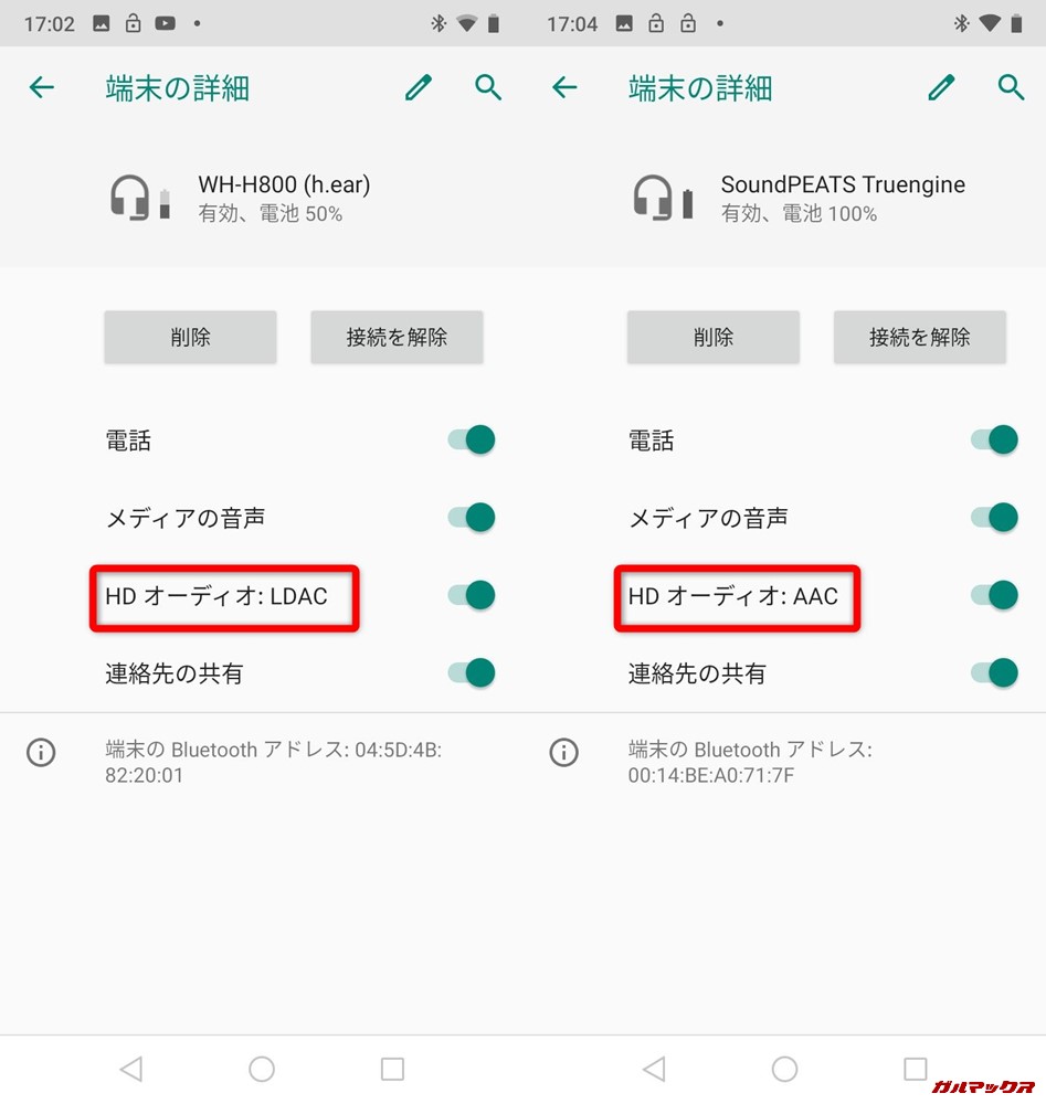 BluetoothコーデックはSBC・AAC・LDACでの接続を確認