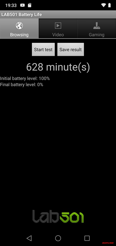 ▼バッテリー持ちの検証が完了致しました。今回もLAB501を利用してWEBサイト表示・スクロール・リロードを行い、満充電からバッテリーが切れるまで検証。連続駆動時間は628分(10時間28分)という結果となりました。まずまずの数値ですが、検証時に輝度を50%に設定すると非常に暗いです。輝度を上げると本検証結果よりも2~3時間ほど駆動時間が短くなるので注意。↓