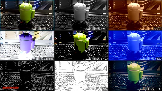 ▼カメラのUIは非常にシンプルで、撮影モードも「通常」「パノラマ」「PIP」「HDR」「動画」と多くはありません。PIPモードというのはアウトカメラで撮影している画像にインカメラの画像を合成することが出来る機能です。↓