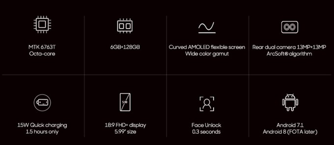 ▼Elephone UとElephone U ProはGalaxy Edgeシリーズのように画面の左右が美しいカーブを描くエッジカーブスクリーンを採用。しかも、iPhone XやGalaxy S8などで採用されている発色の良い有機EL(AMOLED)を採用してるんです。↓