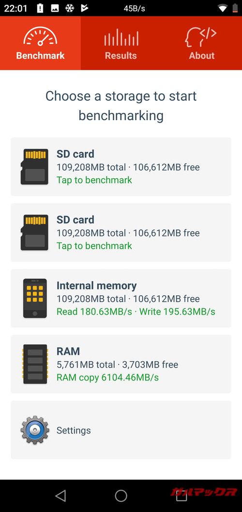 ▼A1SDでストレージ速度を測定Readが180.63MB/s、Writeが195.63MB/sで価格相応。ストレージ速度で快適性が変わるゲームではちと厳しい数値。↓