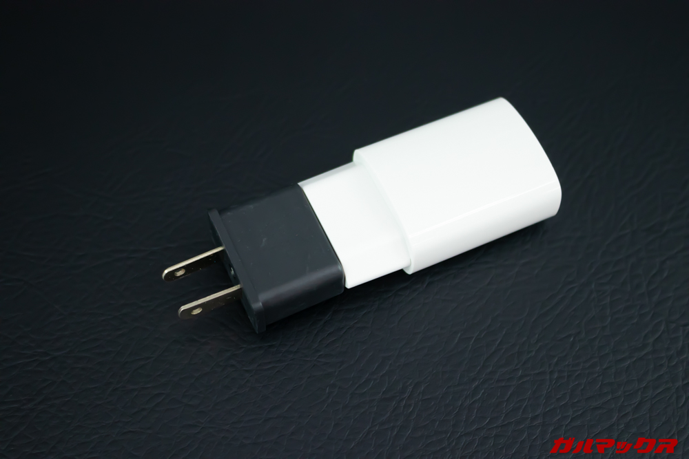 ▼充電器はご覧の通り日本のコンセントに挿すことが出来ない形状なんですが、ありがたいことに変換プラグがオマケで付いておりました。↓