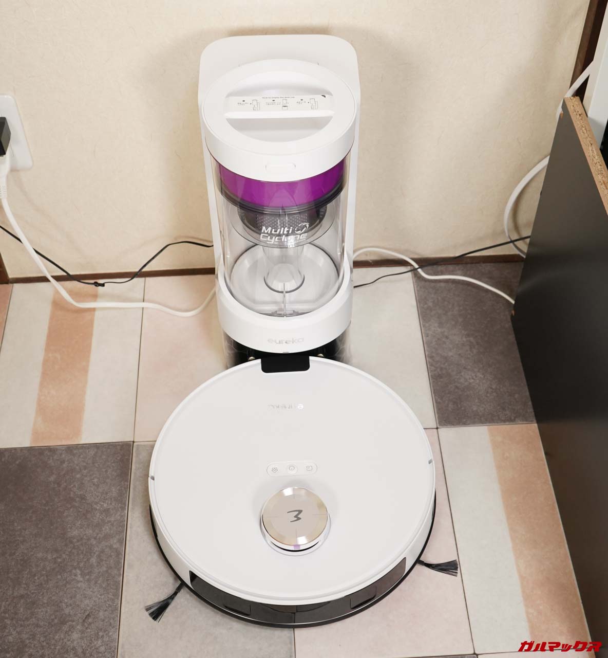 ゴミ収集ボックス付きの製品ってステーションの大きなモデルが多くて、これまでレビューしてきたハイエンドモデルは6畳部屋だと少し厳しいサイズ感。