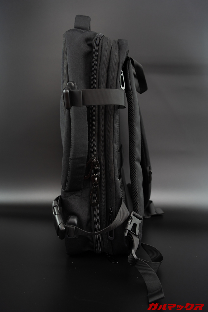 ただ、重量が増えると背負った時に疲労感が溜まりやすくなるので、個人的には左右の肩掛けを胸元でパチっと留めるバンドがほしかった。重量が増えると体にバックパックを密着することで疲労が軽減されるんだわ。次の製品では装備よろしく。