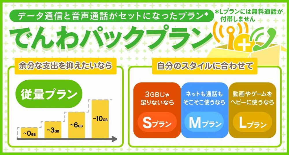大容量のプランがいい!って方は定額プランの20GB以上かこれから紹介するでんわパックプランのM以上がオススメです!