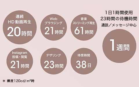 ▼バッテリーは4000mAhと大容量で、AQUOS独自の節電機能も相まって最大1週間と驚異の駆動時間を誇ります↓