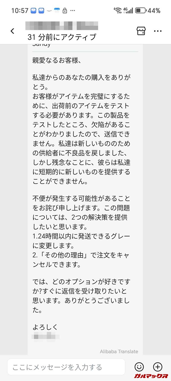 ▼ショップからメッセージが届くとアプリ通知が届くんでチェック。注意点として、やり取りは基本的に英語となります。↓